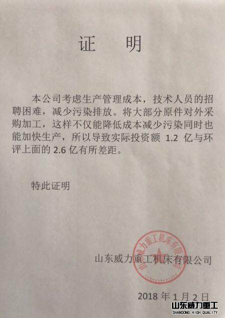 建設單位 | 山東威力重工機床有限公司 |